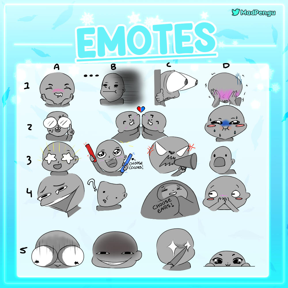 YCH (Your Character Here) Emote Bundle! The images provided are an example of the emotes you can have for your channel/server/etc. Just ask what kind of emote you'd like and I'll be happy to assist!